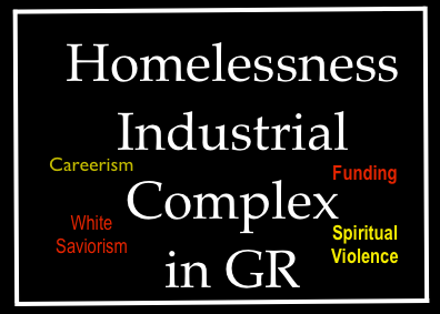 Therefore, we need to examine not only the larger social factors which lead to people being unhoused, we also need to take a more honest look at what we might call the Homelessness Industrial Complex in Grand Rapids and why their function primarily serves to perpetuate homelessness in this community.