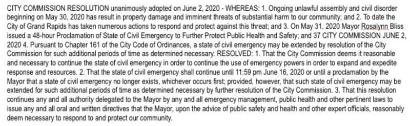 In fact, the City of Grand Rapids adopted a resolution on June 2nd, just days after the May 30th rebellion, a resolution which reads:
