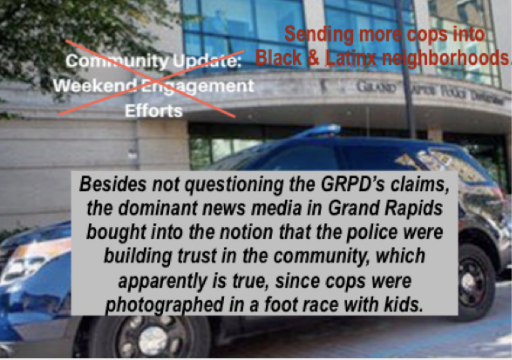 None of this is surprising, but that doesn’t make it any less problematic. As we wrote back in November, the GRPD and other Grand Rapids City Officials have been attempting to control the narrative about what happened during the May 30th Rebellion, along with trying to counter the narratives that community-based organizers have been presenting, particularly those seeking to Defund the GRPD.