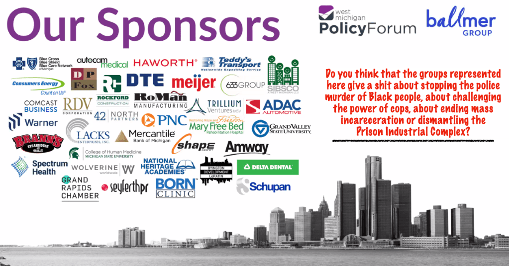 West Michigan Policy Forum hosted event on criminal justice reform is code for protecting White Supremacy, the Prison Industrial Complex and Business as usual