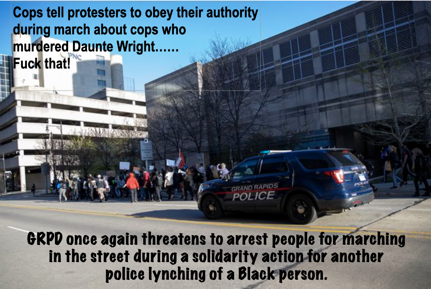 Protest in Grand Rapids focuses on the police lynching of Daunte Wright, GRPD again threatens people for not being obedient