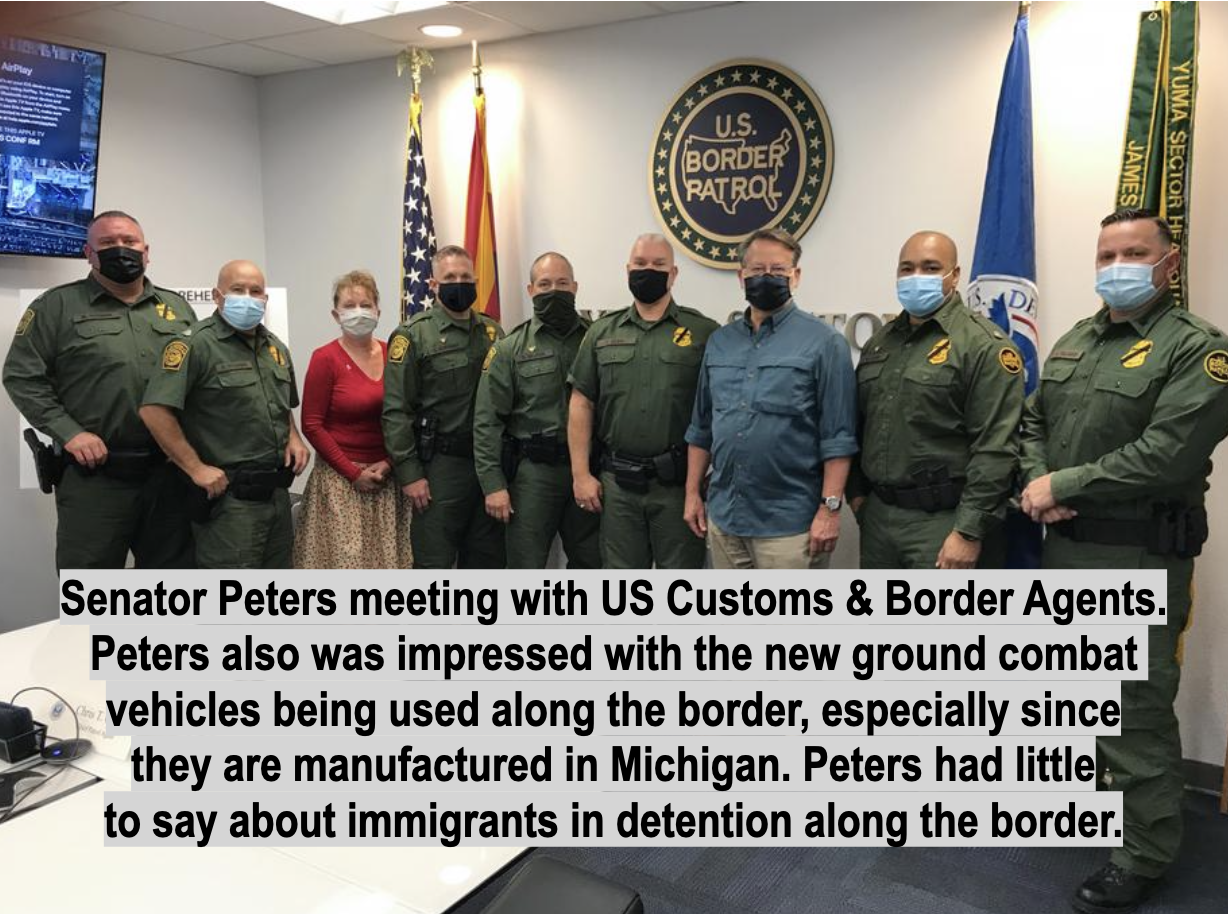 Such a statement from Peters is not surprising, not just because he is Chairman of the Homeland Security, but because he is deeply committed to funneling Pentagon contracts to private companies, like the one based in Warren, Michigan, which makes combat vehicles used by the US Border Patrol, mentioned in the Senator’s Media Release.