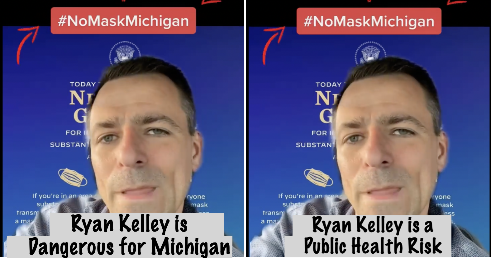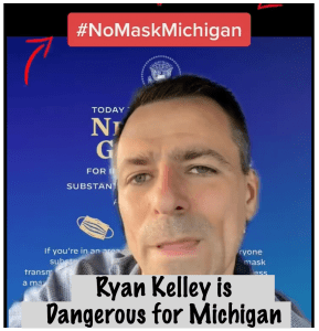 Ryan Kelley’s Facebook page isn’t all that different than his website, although it is more active in terms of content. Within the past week of content, Kelley uses comments from Marjorie Taylor Greene, posts about the contested election results in 2020, comments about his commitment to making Michigan an open carry state and his ongoing belief that COVID 19 was a hoax. His anti-vax and anti-mask positions might be his most dangerous, yet no one in the commercial media is scrutinizing the fact that a GOP candidate for Governor believes that COVID 19 is fake news.