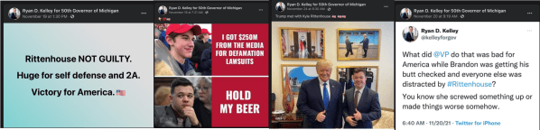 The second example comes to us from the Facebook page of Ryan Kelley, founder of the American Patriot Council and Republican candidate for Governor in Michigan.