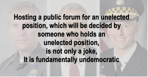 Is there really any benefit to holding a public forum for the next chief of police, when the public doesn’t get to decide?