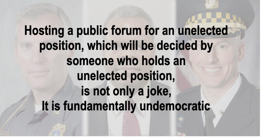 Is there really any benefit to holding a public forum for the next chief of police, when the public doesn’t get to decide?
