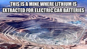 Electric vehicle batteries rely on minerals such as cobalt, lithium and nickel. Most of these minerals are mined in developing countries, or the more honest term for these countries, the Global South. The mining of these minerals often takes place with no environmental regulation, with the pollution of local water systems often being the result. Another consequence of the mining of resources for electric vehicle batteries is that there is labor exploitation. A recent United Nations post stated: