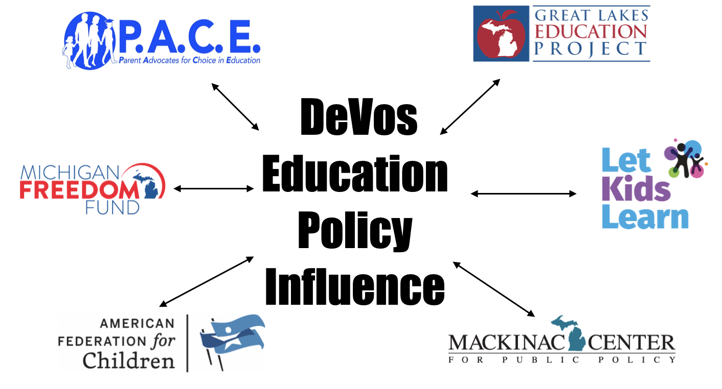 So it seems that there are several groups that not only share the same address, they share the same ideological framework, they all receive lots of funding from the DeVos family and they have clear connections to Michigan GOP insiders. Plus, all of these groups are committed to dismantling Public Eduction as we know it.