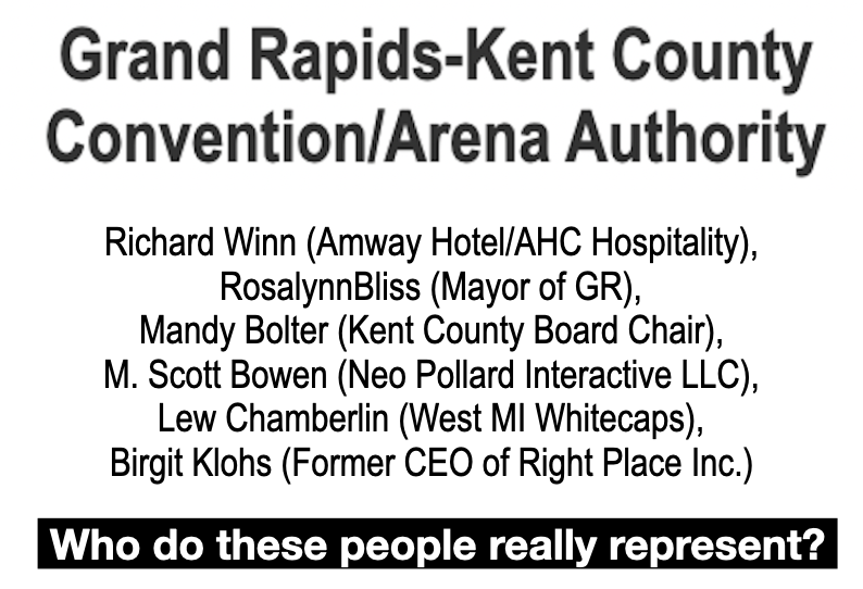 DeVos family. In addition, we discussed how the Convention Arena Authority (CAA) was run by people who are connected to the Grand Rapids Power Structure or represent other corporate interests.