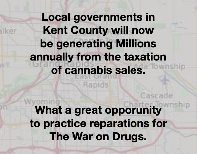 Now, if we are to take seriously Michelle Alexander’s admonition to pay reparations, which we should, the governments of Grand Rapids, Lowell and Kent County have an opportunity to financially compensate those most affected by the War on Drugs.