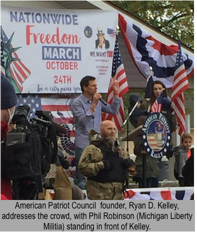 After the 2020 Elections, Kelley joined other Trump supporter in denouncing the outcome of the election, with Kelley traveling to Detroit to protest outside of one of the vote counting sites, then hosting another rally in Lansing late November. We did include video that the American Patriot Council (AMC) had used at that Stop the Steal rally, but the AMC once again removed that content.