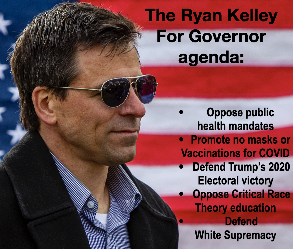 However, shortly after Kelley’s announcement to run for Governor, much of the news media’s attention had moved on to other things. Kelley was not generating a great deal of campaign contributions, so his campaign also was downplayed. We continued to report on Kelley, providing a deconstruction of a political ad he produced in October of 2021.