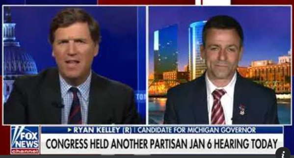 The arrest of Ryan Kelley by the FBI has made him an attractive candidate within the Trump wing of the GOP. According to Kelley’s Facebook page, he is receiving hundreds of e-mails and messages on how to donate to his campaign. In addition, since his arrest last Thursday, Kelley has been invited to speak at numerous locations, was interviewed by Tucker Carlson on Monday and has been a quest on several other right wing radio shows and podcasts. On the short interview with Tucker Carlson, Kelley says he believes that his arrest was politically motivated, particularly because he is a candidate for Governor. In addition, Kelley was interviewed by Steve Bannon on the same day that he was arrested by the FBI.