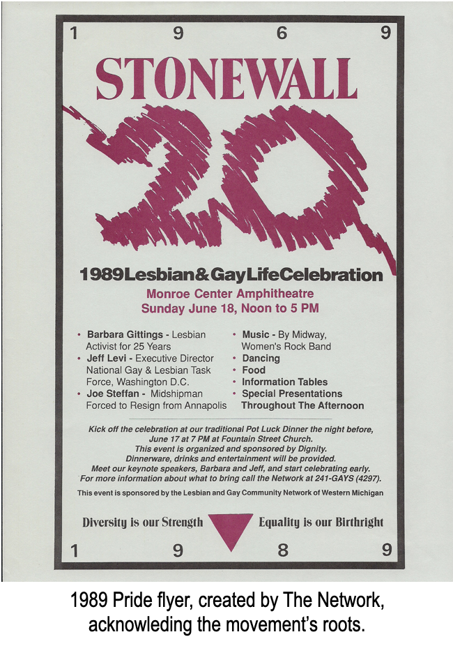 In addition to the interviews, we collected tons of archival materials – pictures, video, posters, flyers – along with sifting through The Network newsletters and a methodical research project of the Grand Rapids Press from the late 1970s through 2010.
