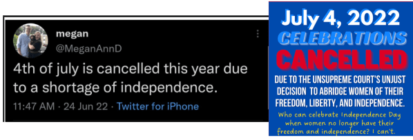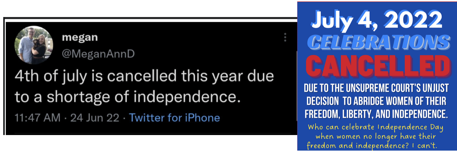 In addition, to the white privileged calls to boycott the Fourth of July, many white-centered organizations and white individuals have been using additional memes to reflect their anger towards the current US Supreme Court Justices, where they refer to them as the American Taliban, even changing the images of the 6 Supreme Court Justices that voted against Roe v Wade to look like members of the Taliban.