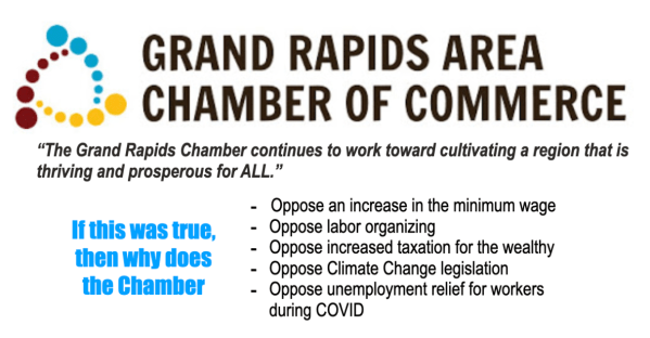 Ultimately, the Grand Rapids Chamber of Commerce has a long track record for not caring about the most vulnerable people in our community. This is because the local Chamber of Commerce is made up primarily of the economic and political elite, which will never do anything that threatens or diminishes their own interests, unless that are confronted by resistance movements to do so. The recently held Policy Conference by the GR Chamber and who they invited to speak is just one more affirmation of their commitment to power and privilege.