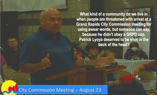 What kind of a world do we live in when people are threatened with arrest at a Grand Rapids City Commission meeting for using swear words, but someone can say, because he didn’t obey the GRPD cop, Patrick Lyoya deserved to be shot in the back of the head?