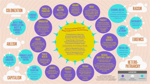 of abortion and reproductive care within larger campaigns against the violence of policing and criminalization. Similarly, organizers sometimes exceptionalize expanding restrictions on abortion and reproductive care as a new or unique type of criminalization, rather than understanding them as a part of a larger web.