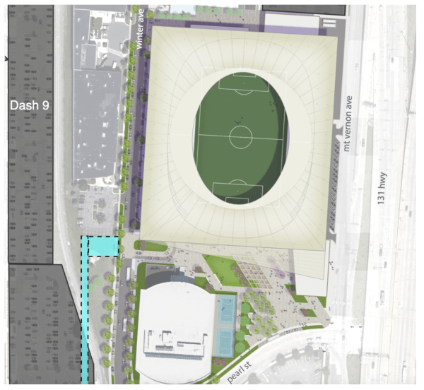 On September 1st, MiBiz reported that the group that is behind the soon to be realized outdoor amphitheater, Grand Action 2.0, is now looking to potentially develop land between Pearl and Bridge St on the near westside for a soccer stadium. A rendering of the potential site can be seen at the bottom of this article.