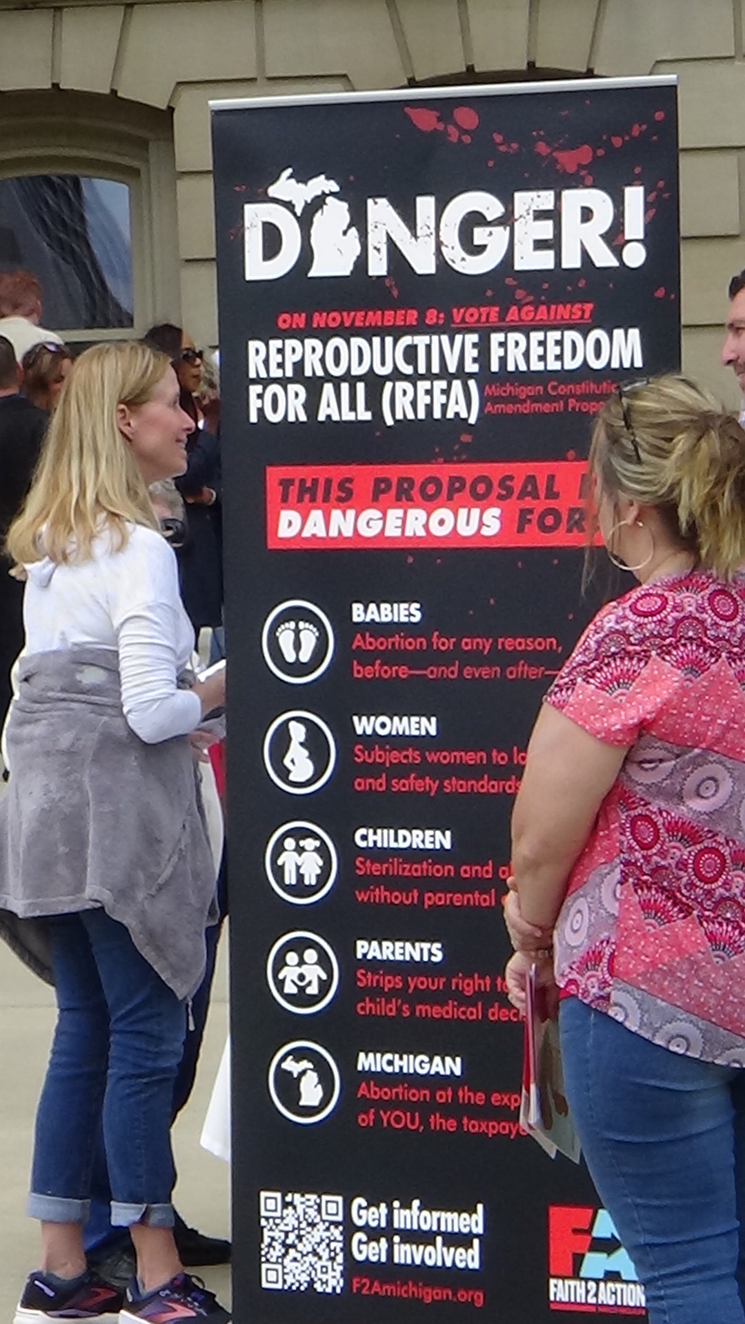 Eventually the group moved outside, since they were going to prepare for an encampment on the State Capital property. However, upon exiting the building, Cosecha Michigan members came upon a rally that was being held by Christians who were also Trump supporters, less than 100 of them. Their rally encompassed information to vote no on Proposal 3, since they oppose abortion, plus they were talking about the “stolen election in 2020” and how public education is both indoctrination and a form of communism. However, the most outlandish thing that was said by one of the speakers, was that Sal Alinsky, author of the book Rules for Radicals, had dedicated his book to Lucifer. I shit you not.