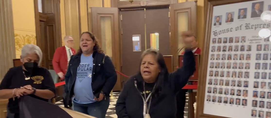 There was a scheduled session in the State House of Representatives today, which the Cosecha members decided to sit in on, but after 20 minutes there were only a handful of elected officials present, so the session was canceled. Undeterred, the immigration justice activists continued to engage in disruptive tactics with the Capital building.