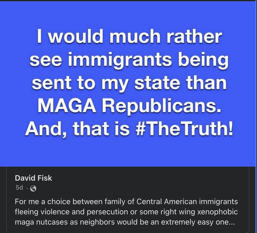 The meme I am referring to originated on the site Occupy Democrats, which states: I would much rather see immigrants being sent to my state than MAGA Republicans. And, the is #TheTruth!