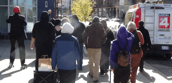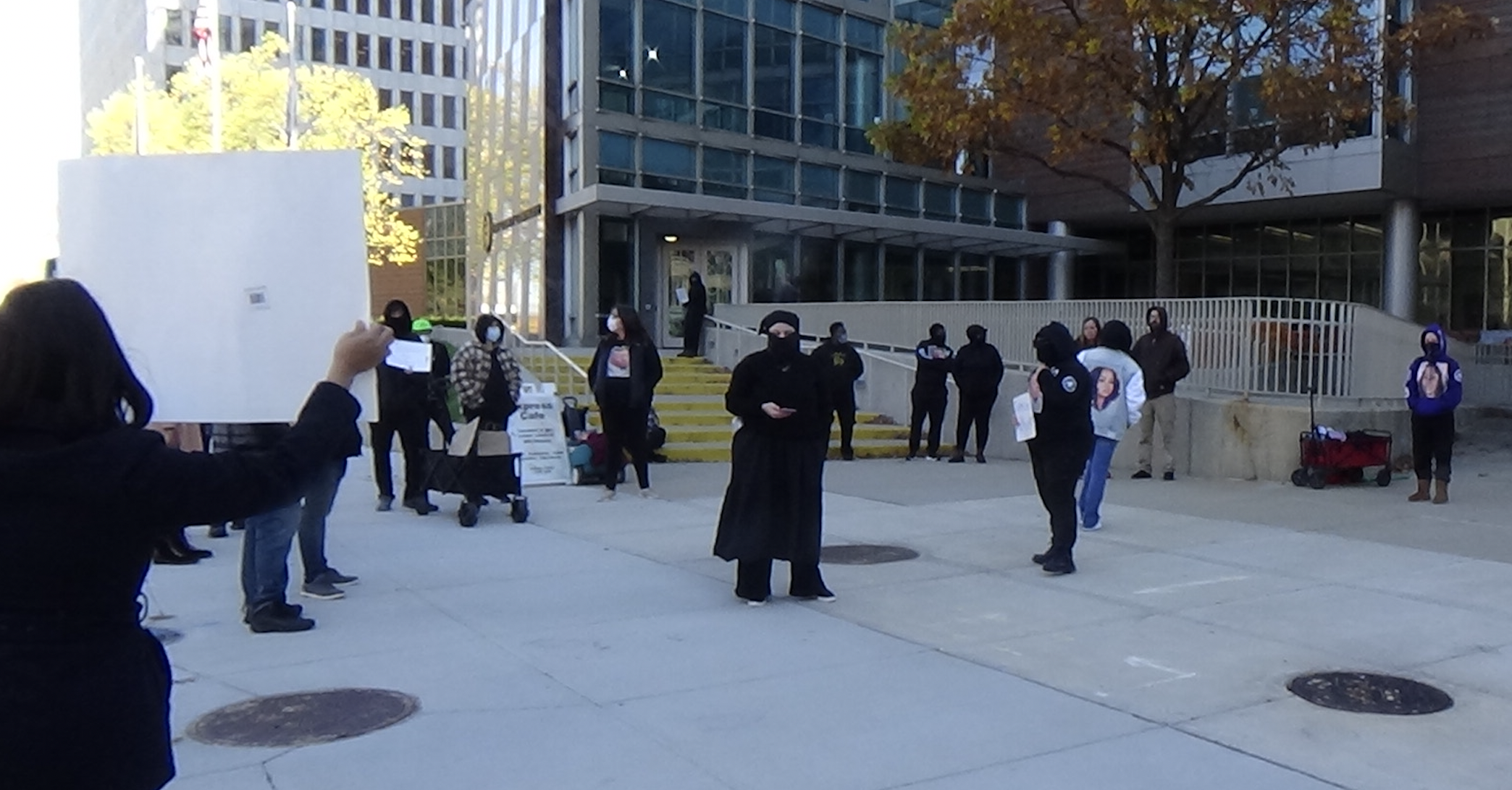 About 30 people began to gather outside of the Kent County Court building around noon on Thursday to continue to public demonstrate solidarity with the Lyoya family. One organizer told this writer that it was important that we continue to take action and apply pressure, any kind of pressure to win justice for Patrick Lyoya’s family.