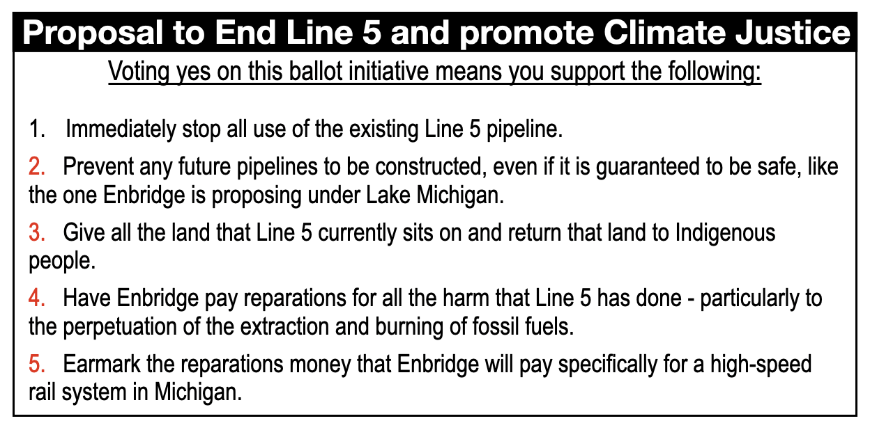 So what would a ballot initiative that would end Line 5 look like. Here is my idea, but others should come up with their own.