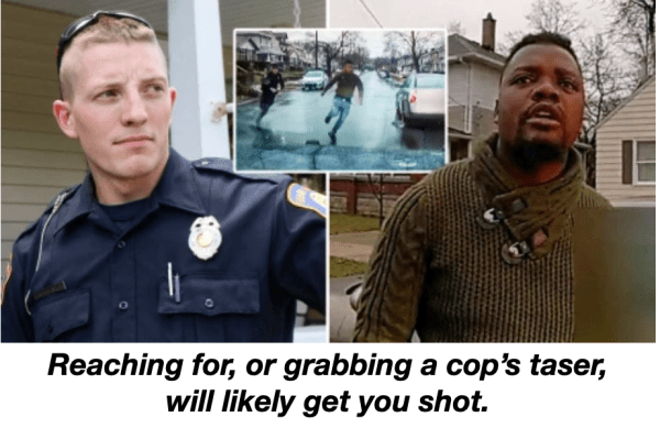 Even with this comment, you can see that grabbing a cop’s taser is referred to as a “deadly force encounter,” meaning the cop gets to shoot the person who grabbed their taser.