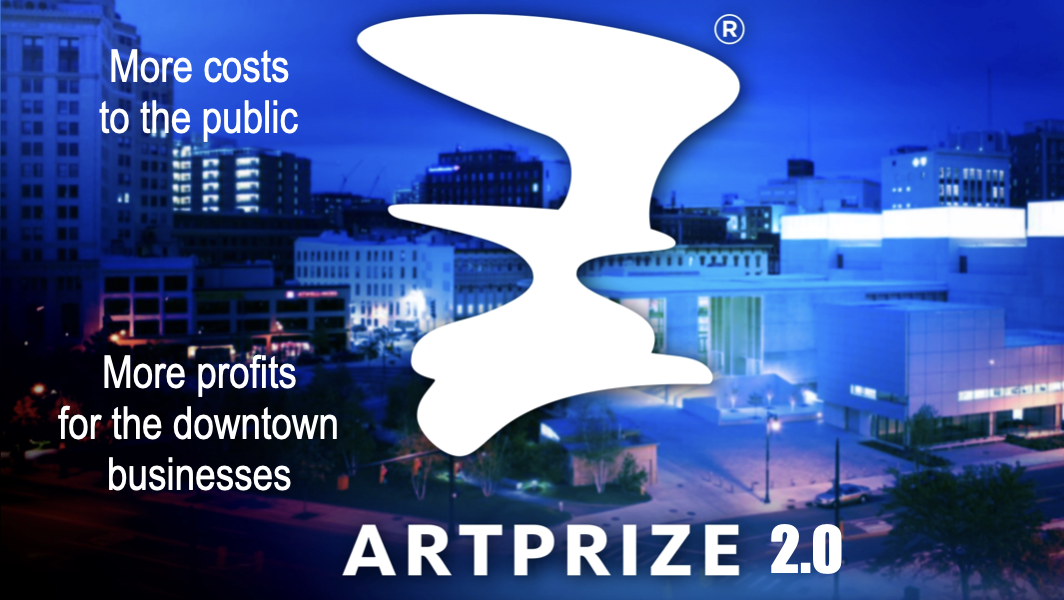 Yesterday, included in the Grand Rapids City Commission Fiscal Committee Agenda Packet (pages 11 – 13), we now know that City officials want to use public funds to continue to subsidize ArtPrize. I say continue to subsidize, since Grand Rapids has been using public money to support ArtPrize, such as the $50,000 they approve in August for the the 2022 integration of the monied spectacle. However, the amount that the City of Grand Rapids approved yesterday is definitely an increase from previous years. The Fiscal Committee document states: