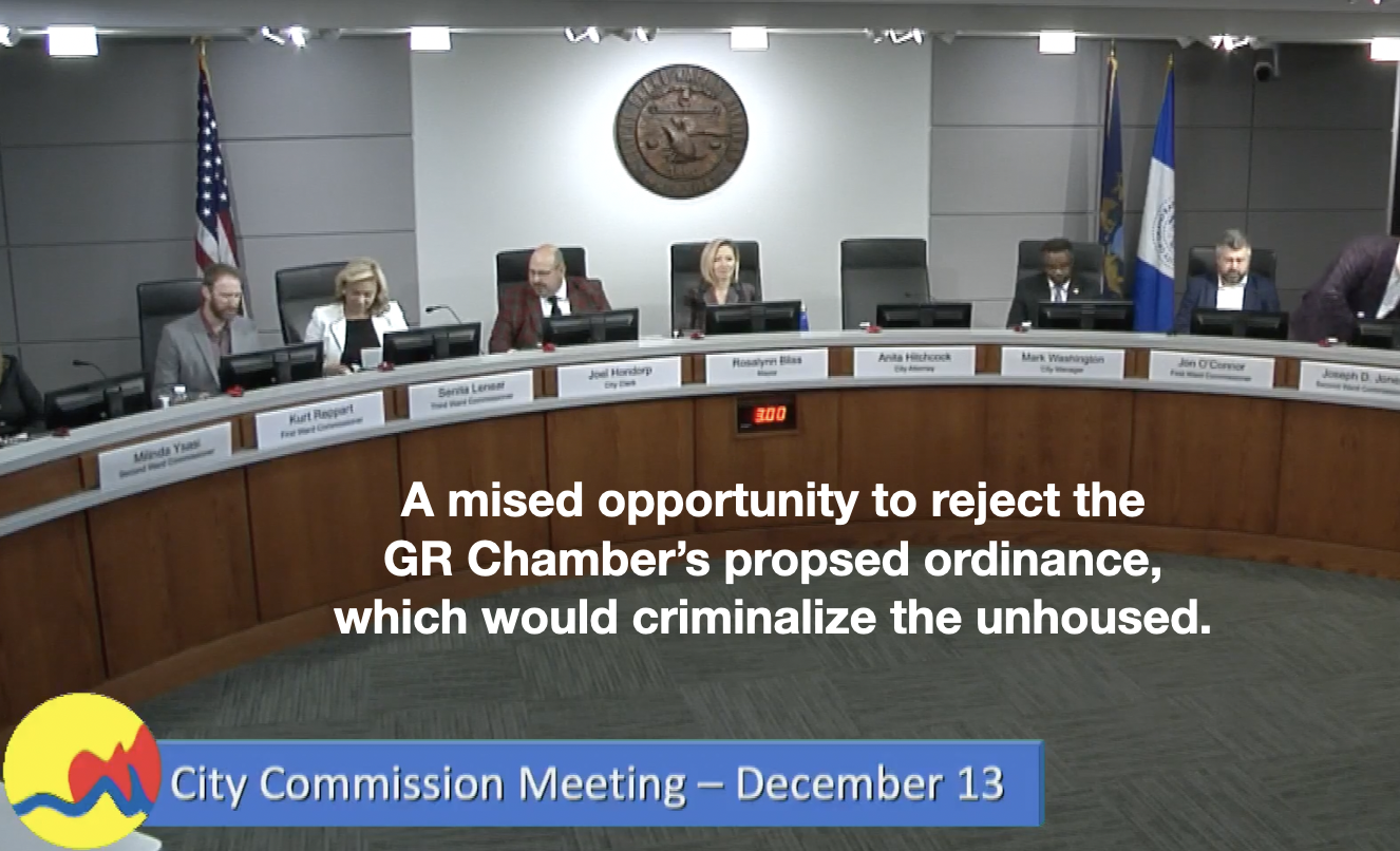 Missed opportunity by the Grand Rapids City Commission to reject the GR Chamber’s ordinance proposal to criminalize the unhoused