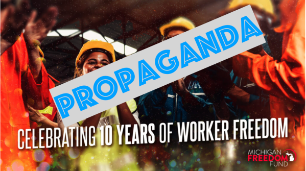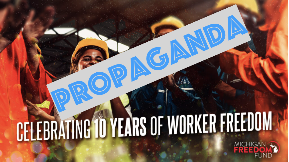 The West Michigan Policy Forum has made five separate blog posts about the importance of having a Right to Work law in Michigan, often using propaganda to justify their stance on Right to Work. For instance, their most recent blog post about Right to Work is from February 8th, with the headline, Fact Check: Right-to-work Helps All Americans Prosper. Not surprisingly, the WMPF blog post provides no hard evidence that Right to Work laws benefit everyone.