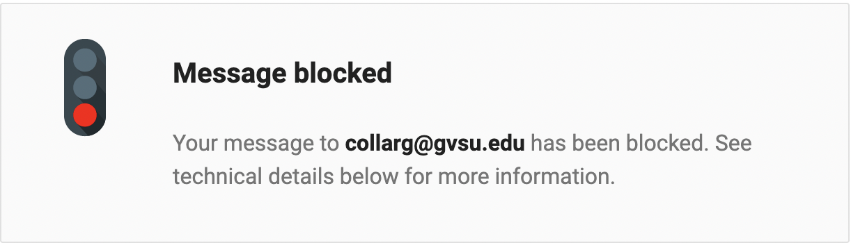The cost of the classes that were approved by the Grand Rapids City Commission on April 25th, run from May through August of 2023. I inquired about the curriculum for the GVSU Police Academy Courses, through their online portal on April 29th, but still haven’t received any response. Then, when I sent an e-mail to the Director of Training, Geoff Collard, this was their response: Your message to collarg@gvsu.edu has been blocked.