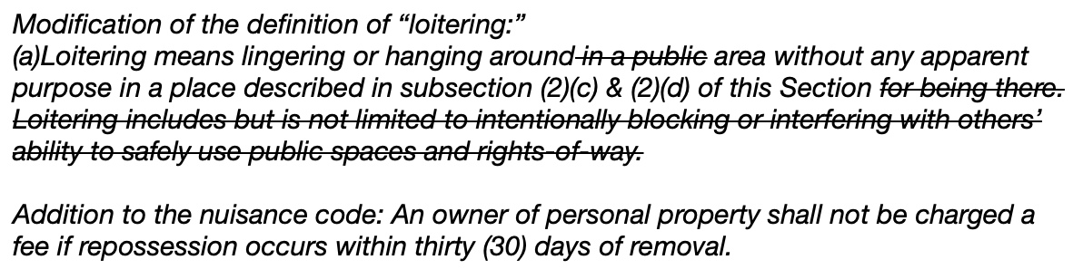 Note that the wording changes are both the result of push back from the community, but these ordinances will still negatively impact the unhoused who are not welcome in downtown Grand Rapids.