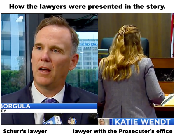 In the case of WZZM 13, there was less bias in how the story was presented, being more rooted in the legal process of the case. The channel 13 story did lead with comments from Schurr’s lawyer, but both lawyers in this case were only heard while they addressed the appellate panel. This means from a TV/video viewer perspective, both lawyer had their backs facing the public.