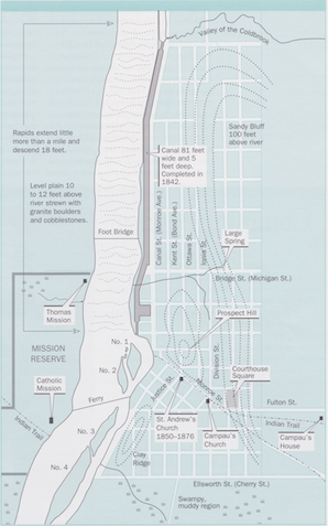 In Z.Z. Lydens’ book, The Story of Grand Rapids, Lydens attempts to portray what happened to the native population as mild compared to other parts of the country. “The history of Grand Rapids does not have a backdrop of conflict with the Indians. There were no tales of raids and scalping and scourging of the settlement with flame.”