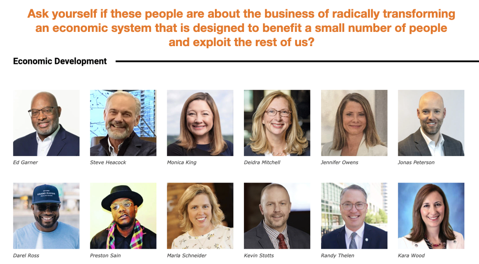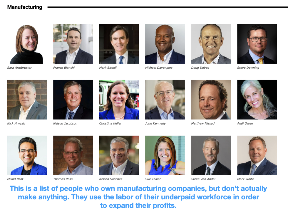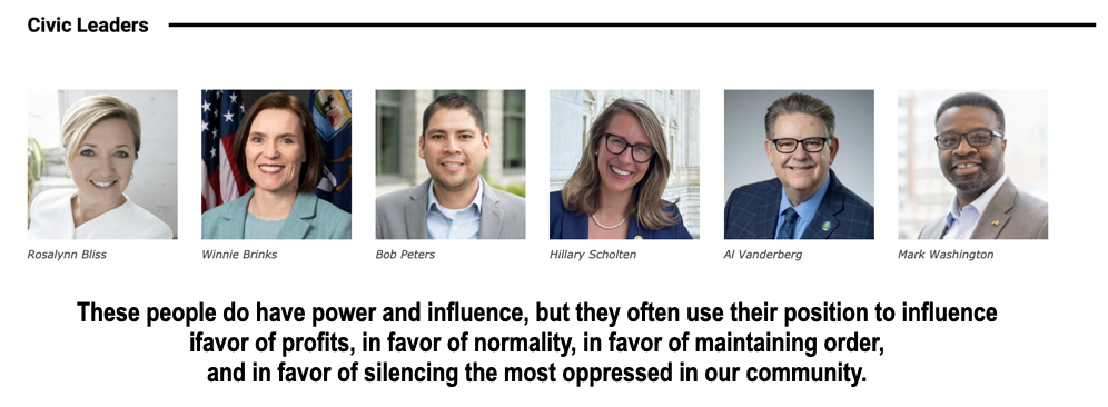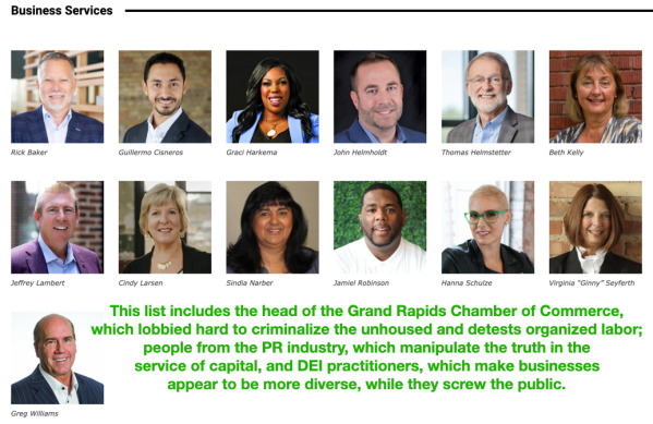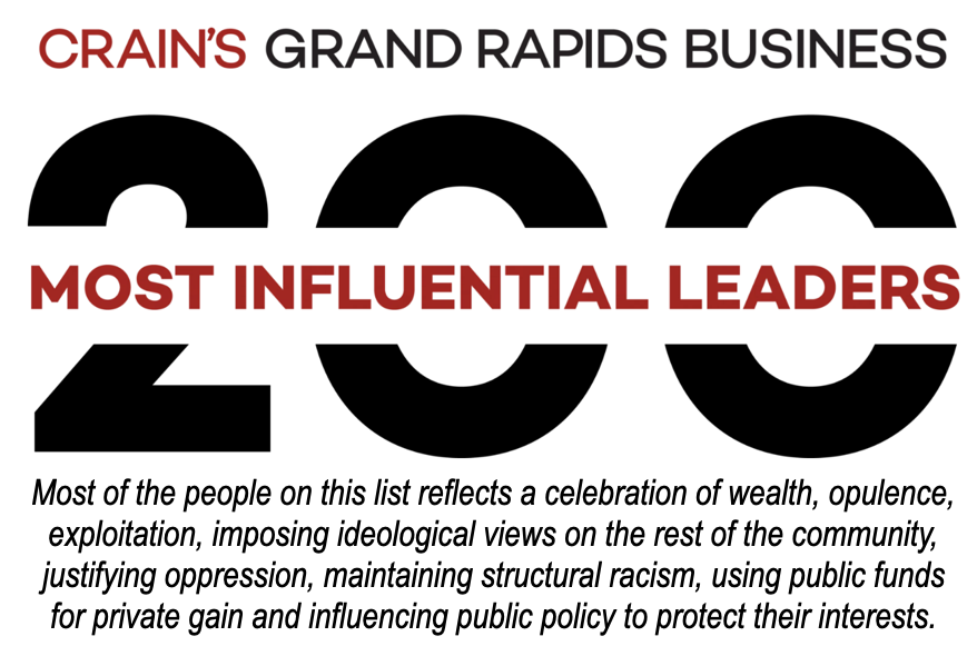 It seems clear to me that what Crain’s Grand Rapids Business means by influential are those who act as power brokers, an assessment I would not argue with. The only difference is that while Crain’s Grand Rapids Business sees these people as vitally important to their world, I view them as an impediment to real equity and liberation. Consider this, that most of the people listed in the 200 most influential are people who make between 6 and 10 figure salaries. Most of the people on this year’s list do not do anything to disrupt the systems of power and oppression that exist in West Michigan, in fact, most of them seek to maintain the systems of power and oppression, and many of them profit from the oppression and exploitation.