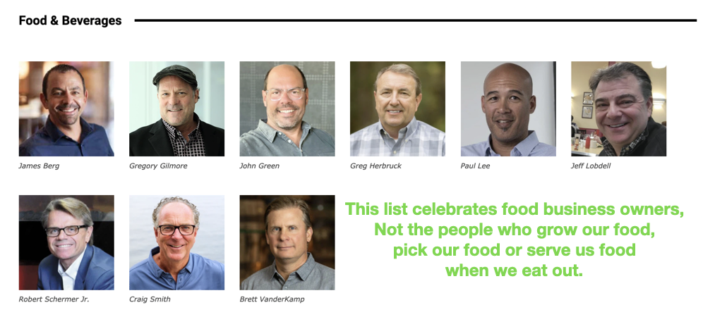 Instead of celebrating those with power and influence, we need to challenge their power and influence: Another list of mostly rich white people
