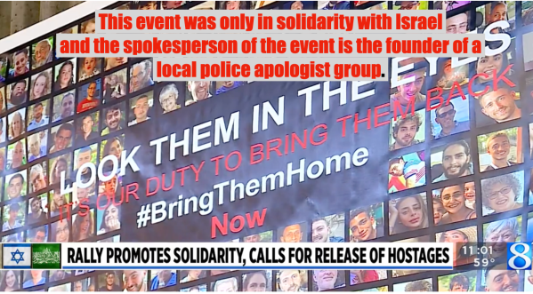 For me, this event held in Grand Rapids last Thursday was clearly a Pro-Israel event, that only focused on Israeli lives, which used resources provided by a national Pro-Israel organization, and the only person interviewed in the story is the founder of a Kent County pro-cop organization. Lastly, it is worth noting that WOODTV8. or any other local news agency, did not cover the admittedly Pro-Palestinian vigil/City Commission action on Tuesday.