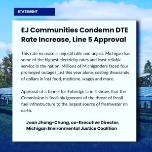 The DTE rate increase is particularly infuriating, so much so that the Michigan Environmental Justice Coalition created an Action Alert specifically to condemn DTE, stating in part: