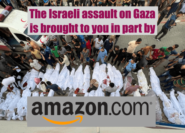 Amazon supplies the tech infrastructure for Israel’s Project Nimbus via a 1.2 billion dollar contract to both Amazon and Google to provide cloud infrastructure, machine learning and artificial intelligence for both governance and military capabilities to prop up the apartheid state and ultimately more efficiently engage in ethnic cleansing and genocide of the Palestinian people.
