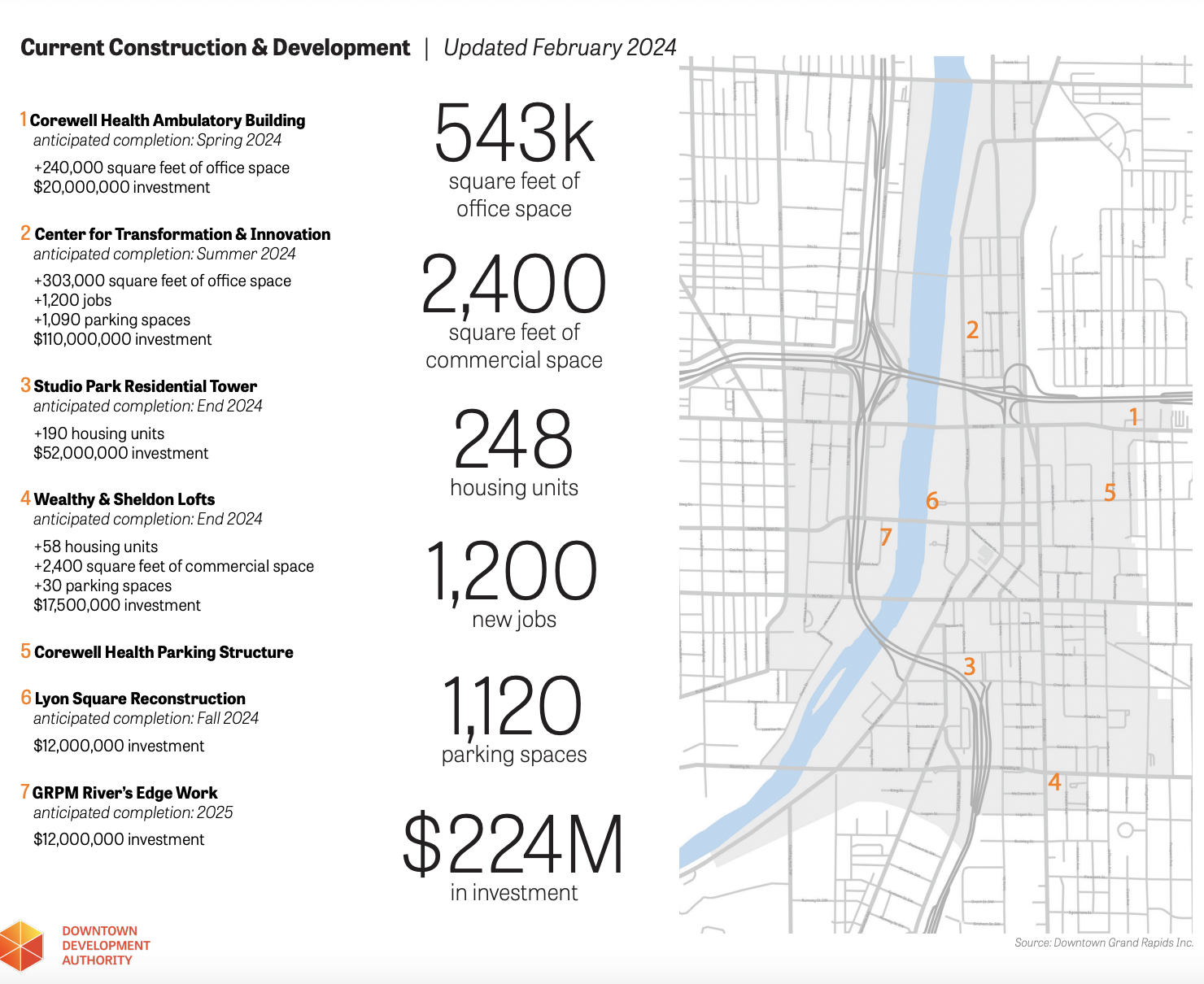 7 developments projects in downtown GR totaling $223 Million will primarily benefit the professional class and businesses that profit from tourism