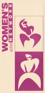 From the organizational brochure: “The Womyn’s Action Network works to eliminate violence against women and oppression of women through self-empowerment and the resurrection of womyn’s voices.” WAN came together in 1992 and began their feminist work with an event that satirized media representation of women.