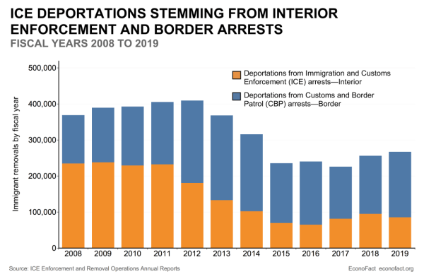 The jingoistic trope was allowed to stand and was never challenged by the MLive reporter. During the Obama Administration 3 million undocumented immigrants were deported, while the number of deportations under the Trump Administration decreased, according to the ICE Enforcement and Removal Operations Annual Reports, which you can see in the graphic below.