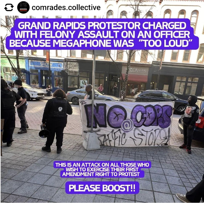 Protesting is not a crime, and all charges must be dropped. We stand with our comrades against police brutality and the heinous murders of Patrick Lyoya and Samuel “SD” Sterling. We echo the demand by the National Alliance Against Racist & Political Repression for community control of the police.