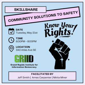This Know Your Rights SkillShare is at the Grand Rapids Pride Center. From the event description: