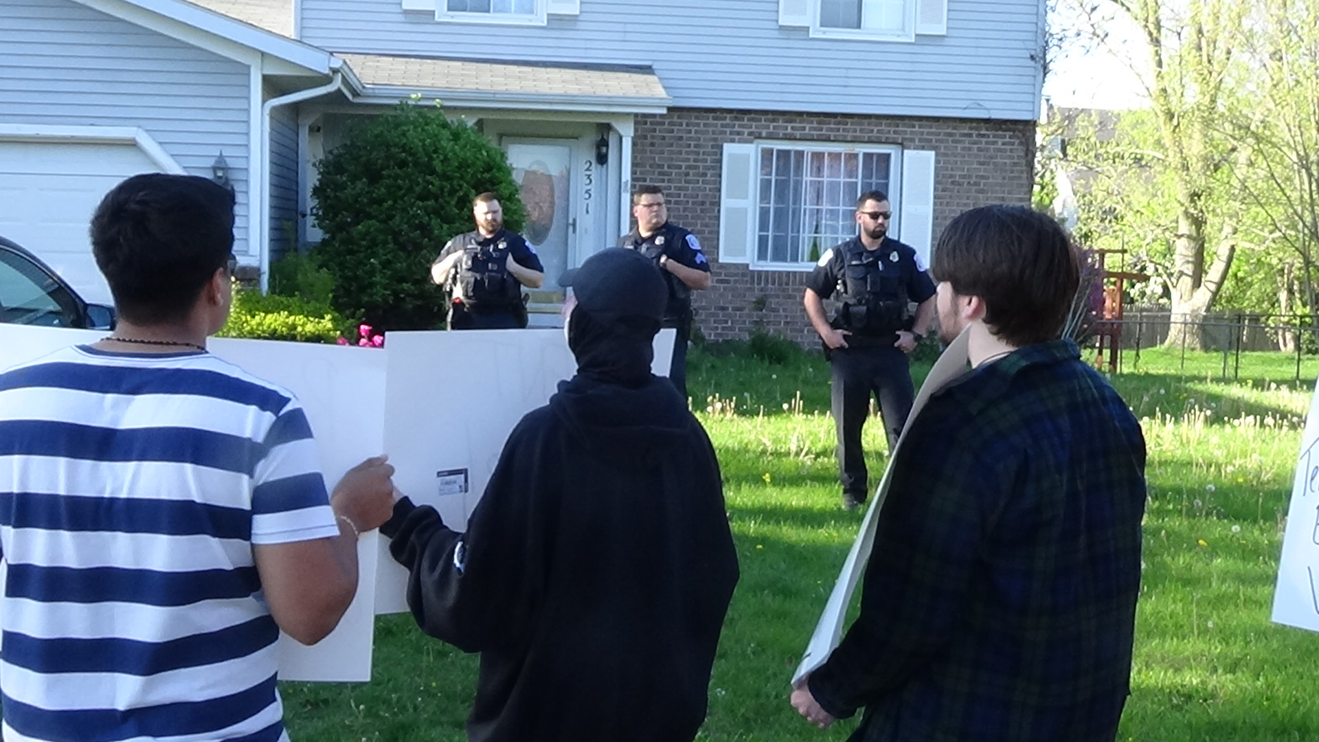 On April 30th, about 15 people showed up to support the tenant and participate in a protest at the landlord’s home, which GRIID posted about here. What was interesting about the protest was that the neighbors didn’t know that their neighbor was a landlord and some of the neighbors thought that the house the landlord lived in was a rental property, especially since they were not taking care of the property, which had high grass, weeds, a car in the driveway with a flat tire and a garage that was filled with stuff and partially open. The landlord came home during the protest and right away called the Kentwood Police, which could do nothing because the protest was on the sidewalk.