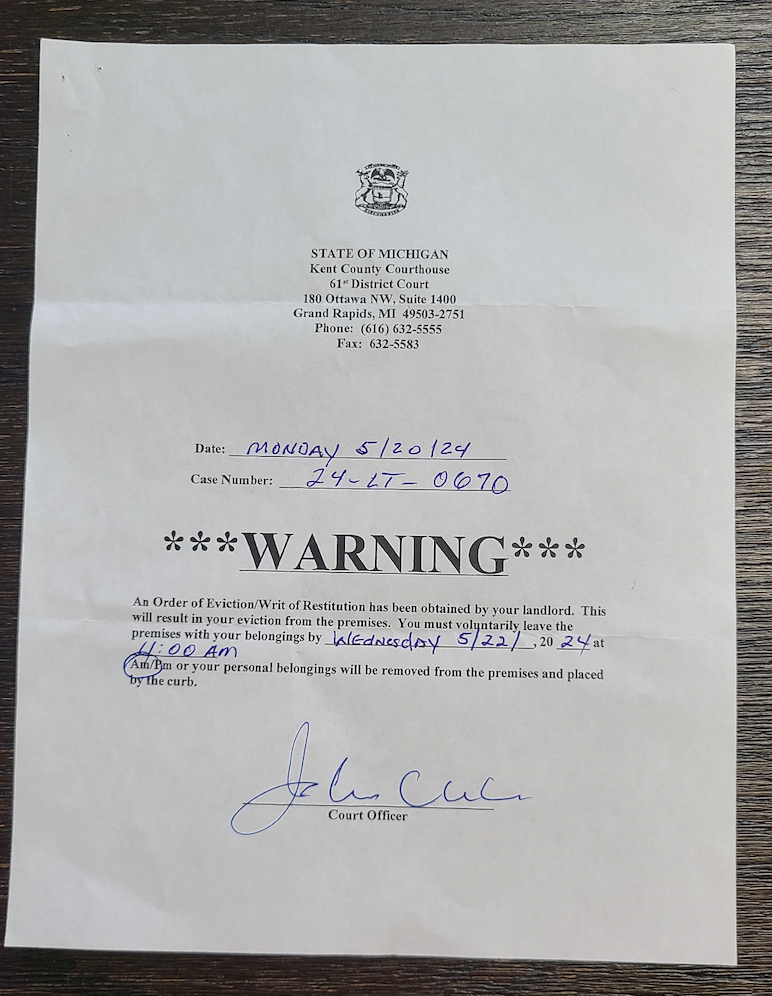 If you have been following the Grand Rapids Area Tenant Union (GRATU) on social media lately, then you are aware of what we have been doing with a tenant that has suffered the violence and trauma of an eviction.