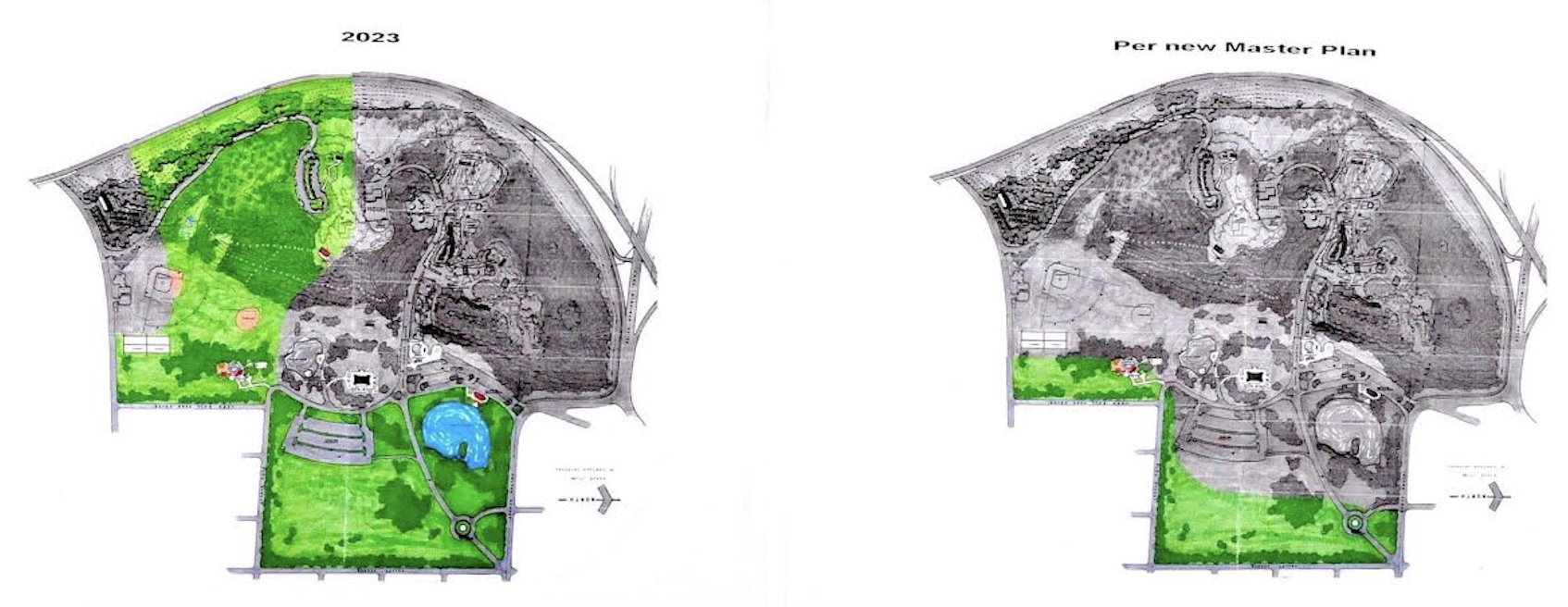 Map Description: Included here are 4 maps that our community member, Peter Carlberg put together. It shows the progression of the zoo’s takeover of our park. The lower right hand corner map labeled “per new master plan” shows the end result and how much green parkland the zoo intends to leave our community. The grey colored areas indicate parkland that the zoo has taken over.