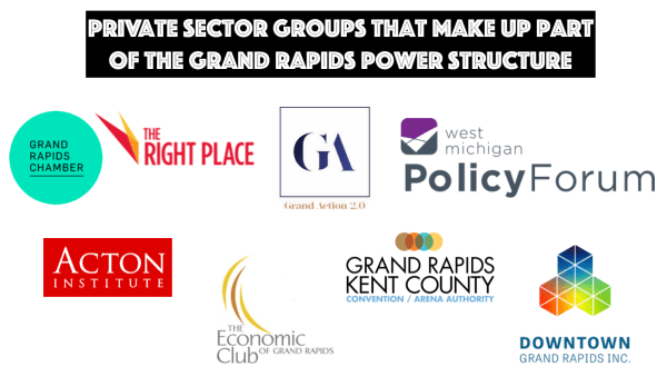 Since I wrote the 2018 Grand Rapids Power Structure analysis, the Grand Rapids Chamber of Commerce has continued to promote economic projects that rely heavily on public funding, but will be owned and controlled by private sector entities, such as the outdoor Amphitheater, the Soccer Stadium and the yet to be formalized Aquarium. The Grand Rapids Chamber of Commerce also created the group Housing Next, which takes a market-based approach to the current housing crisis.